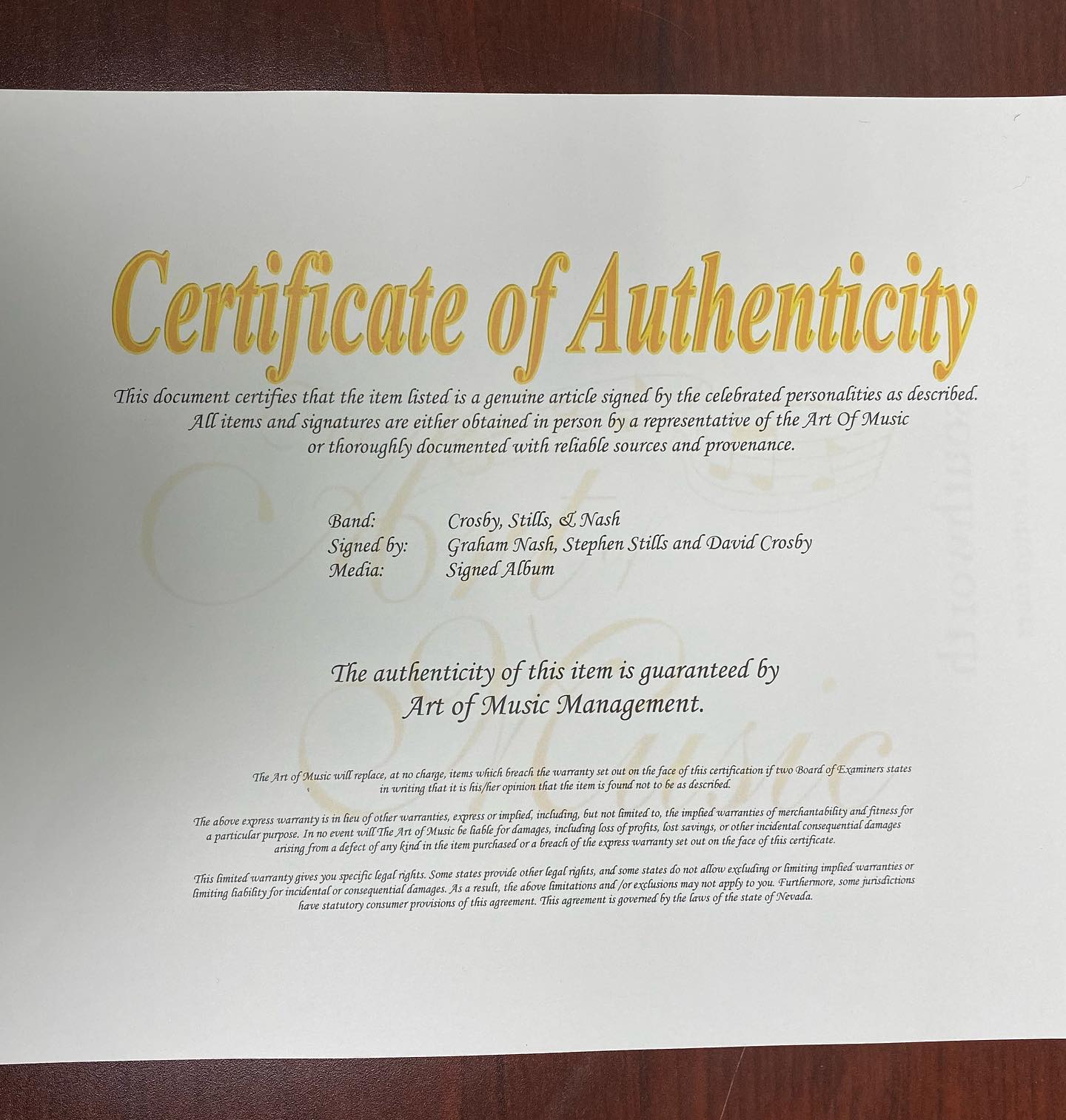 CROSBY, STILLS & NASH - AUTOGRAPHED ALBUM COVER - W/COA